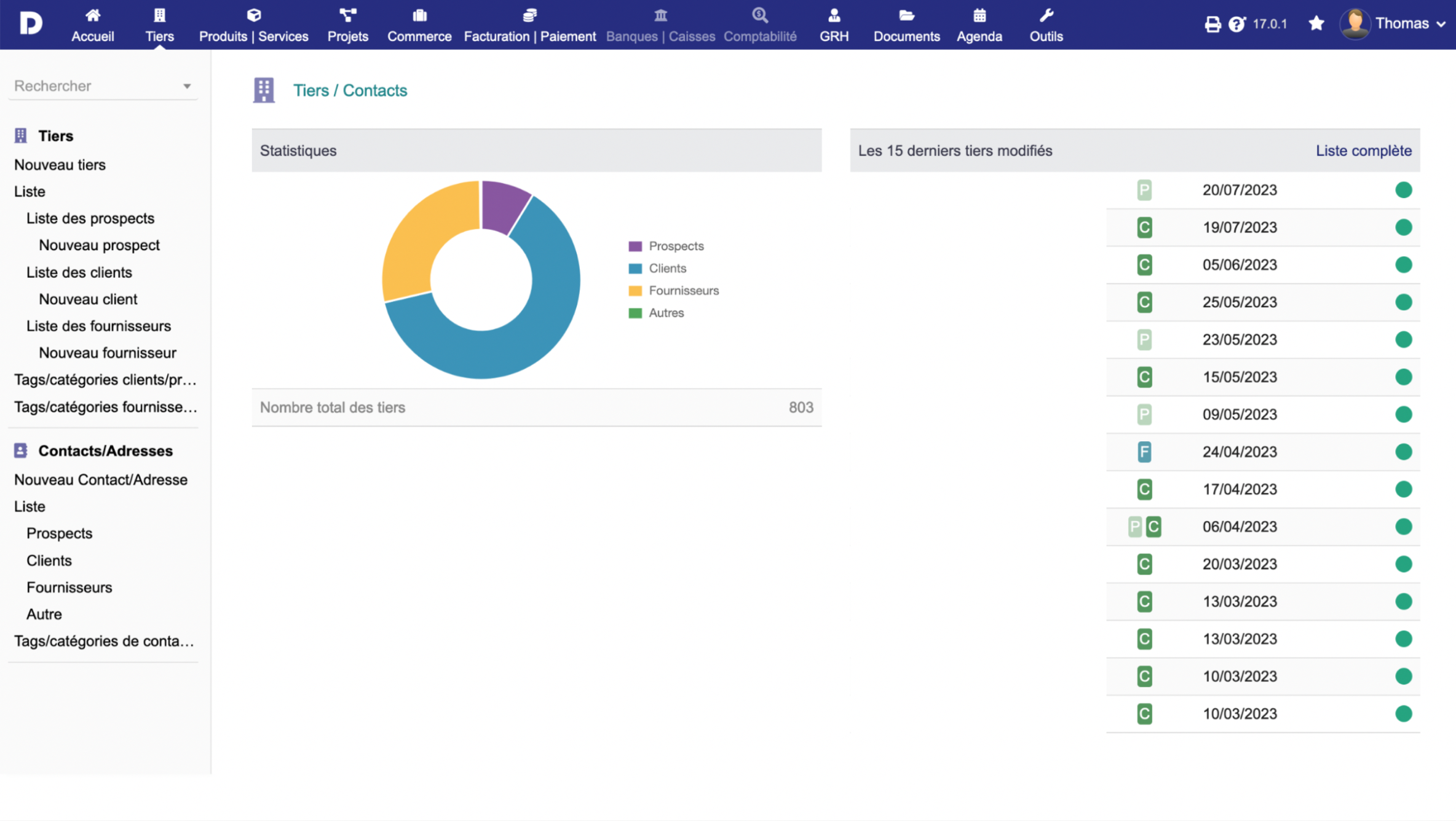 Dolibarr, CRM efficace et convivial, simplifie la gestion de votre base de données clients et le suivi de votre processus commercial.
