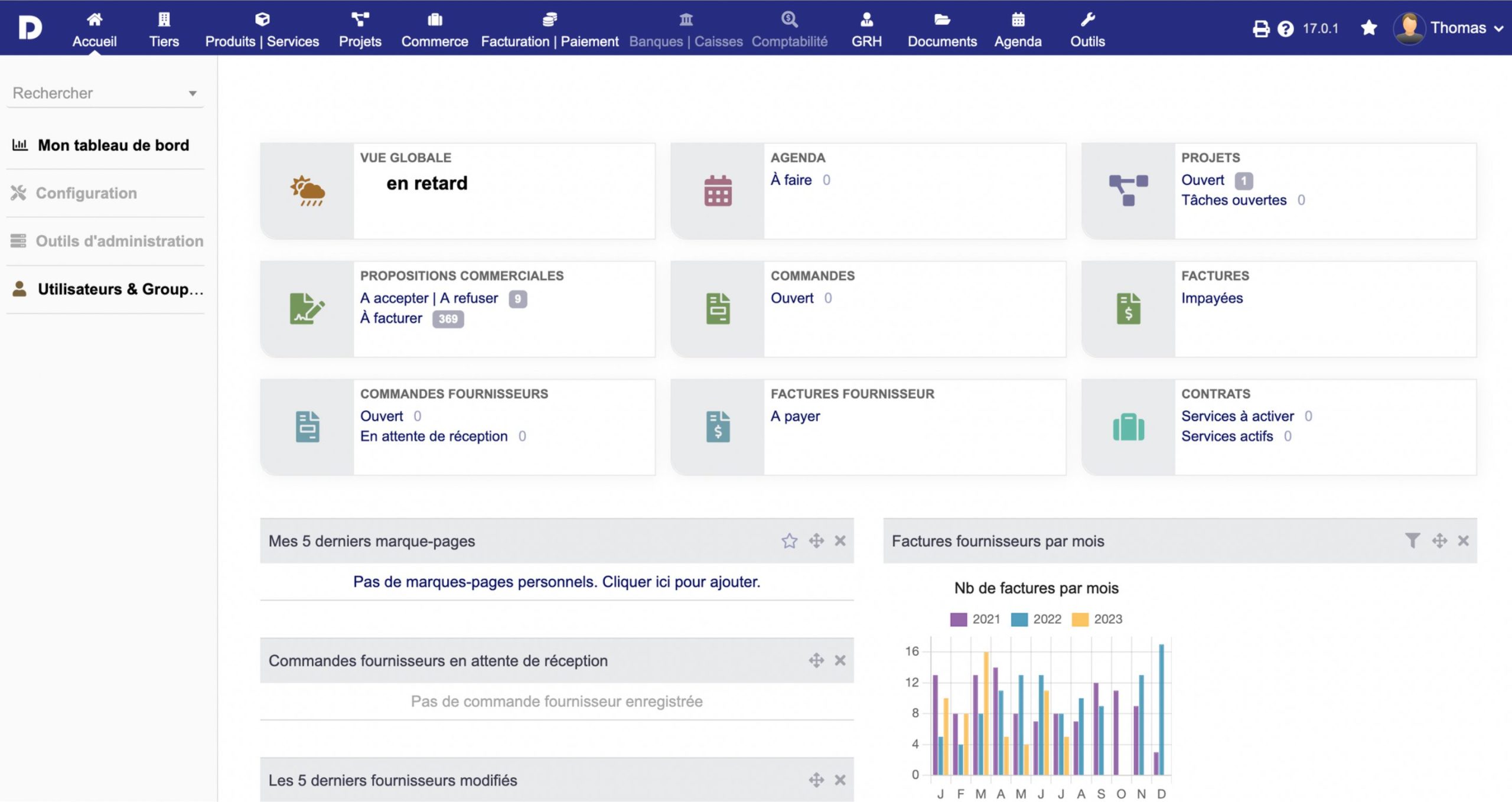 Dolibarr simplifie vos tâches administratives et offre une vue complète de l’activité de votre entreprise, améliorant ainsi sa rentabilité :